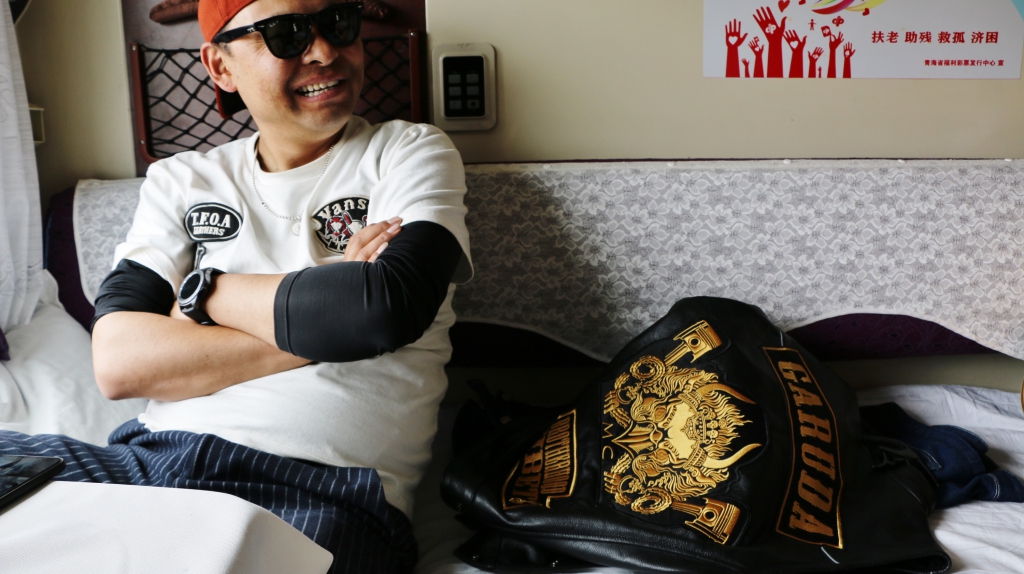 一人はミュージシャンで32歳とか。手首から肩までタトウだ。多分背中も。もう一人は確か34歳といっていたが、マネージャー役に見えた。ラサでバーのバーテンダーもやっているとのこと。しかし、それだけでなく大型バイクの ハーレーダビッドソンを乗り回すグループのリーダーだ。グループの名は、ヒンズー教やチベット仏教の神仏の鳥「ガルーダ」。